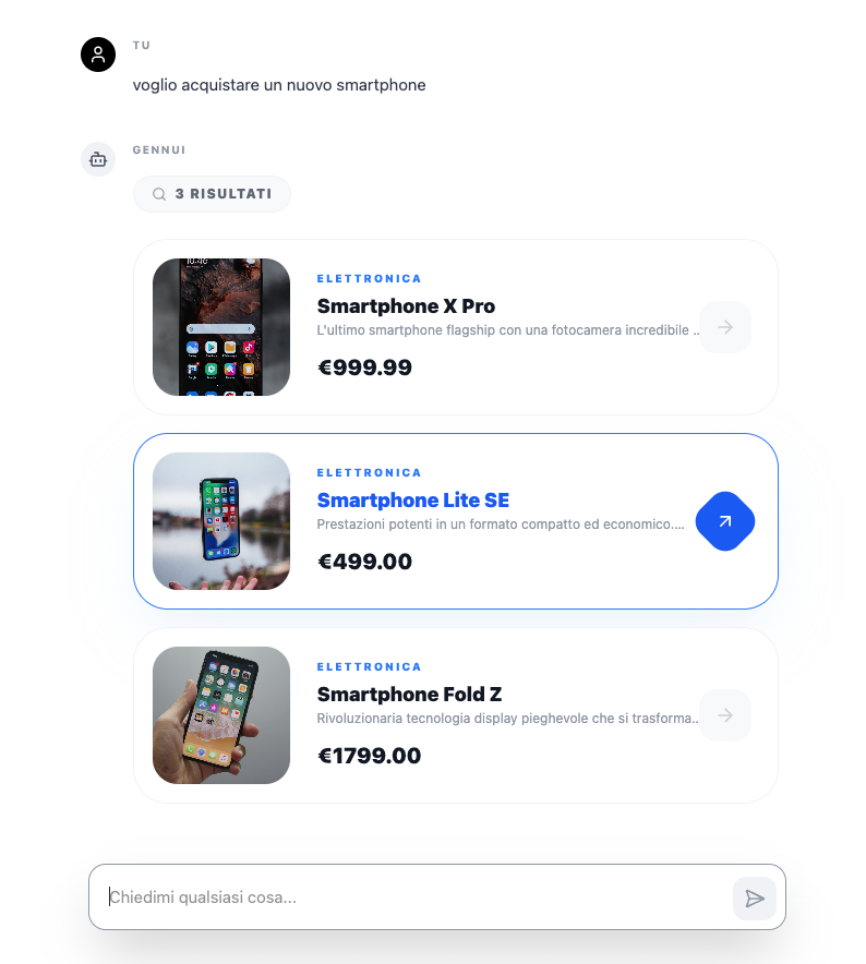 Genn non è un semplice chatbot. È un'architettura intelligente che ho costruito per eliminare la complessità del software tradizionale. Non dovrai più navigare tra menu infiniti: Genn capisce cosa ti serve e crea l'interfaccia perfetta per te in quel preciso istante.