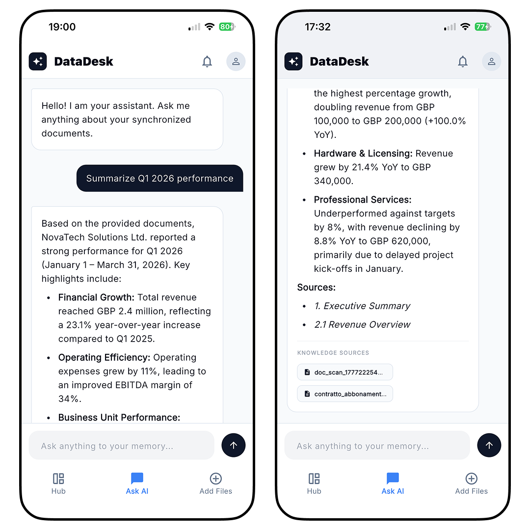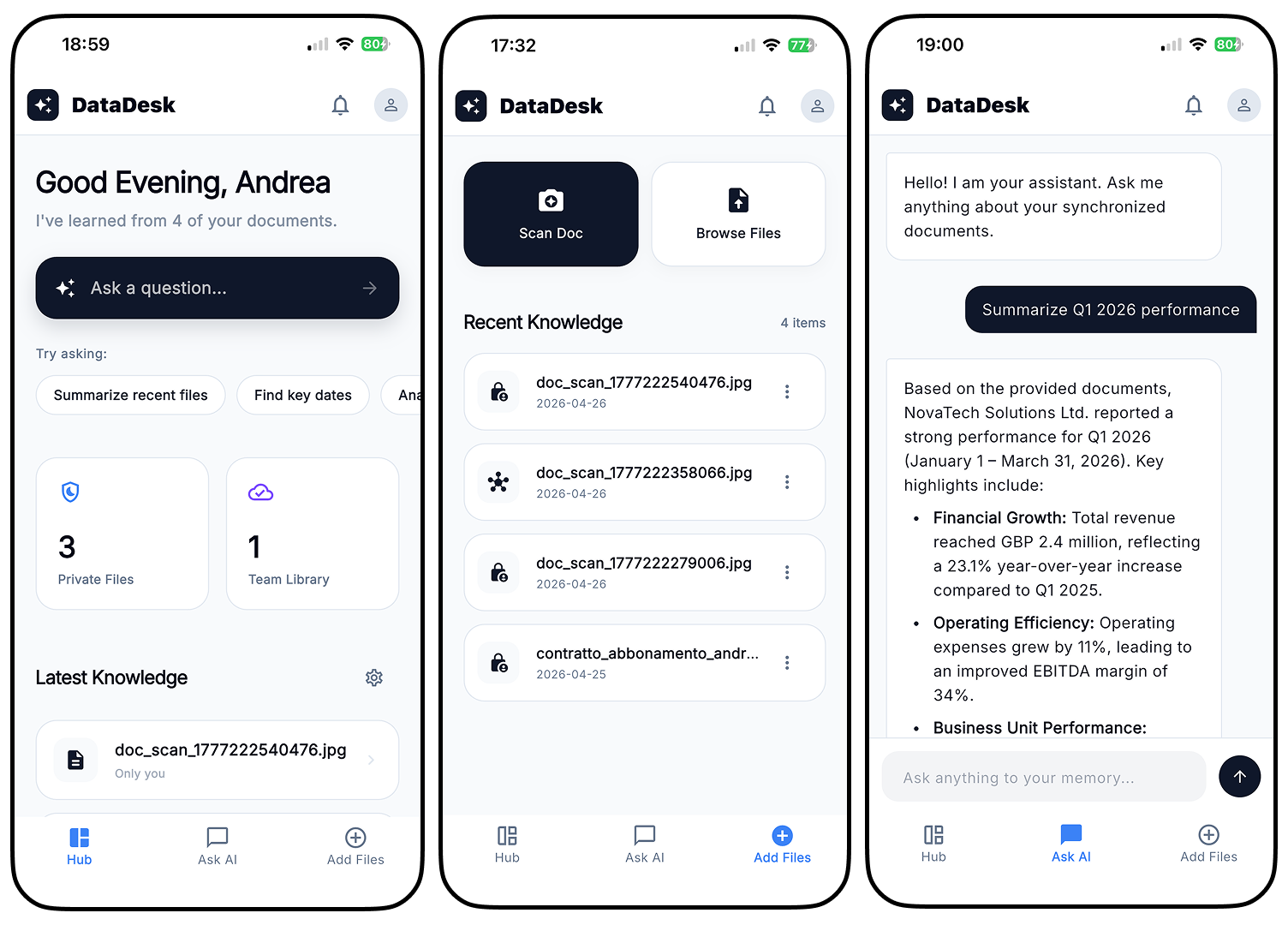 An app that reads documents for you. Just frame a sheet with the camera and the app learns what's written, allowing you to ask direct questions as if you were talking to a colleague.