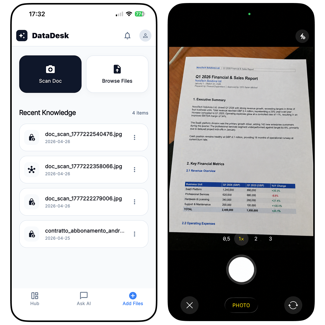 The app that lets you talk to your documents. Frame a sheet and ask it a question.